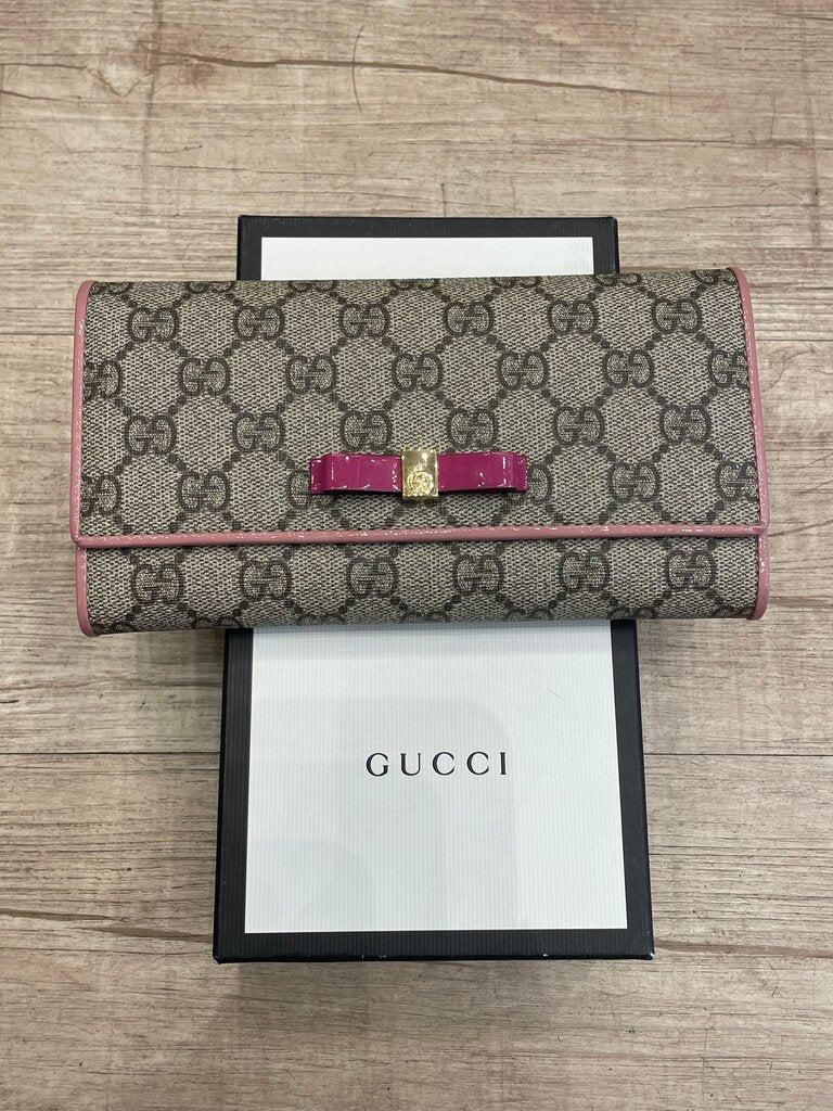 Gucci Monogram Wallet with Pink Bow