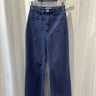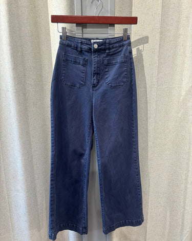 Rolla's dark blue high waisted wide leg pants featuring a clean, structured silhouette with front pockets, zip fly with button closure. Soft yet sturdy with a flattering vintage inspired fit.