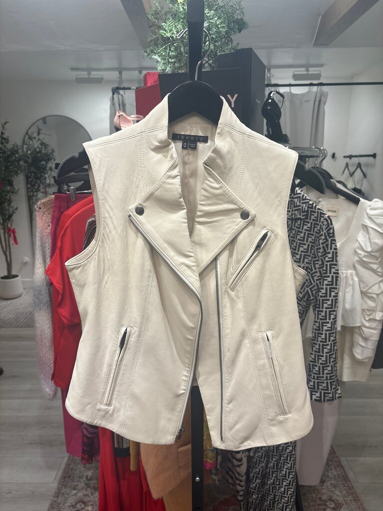 Theory Cream Faux Leather Vest- Size Medium