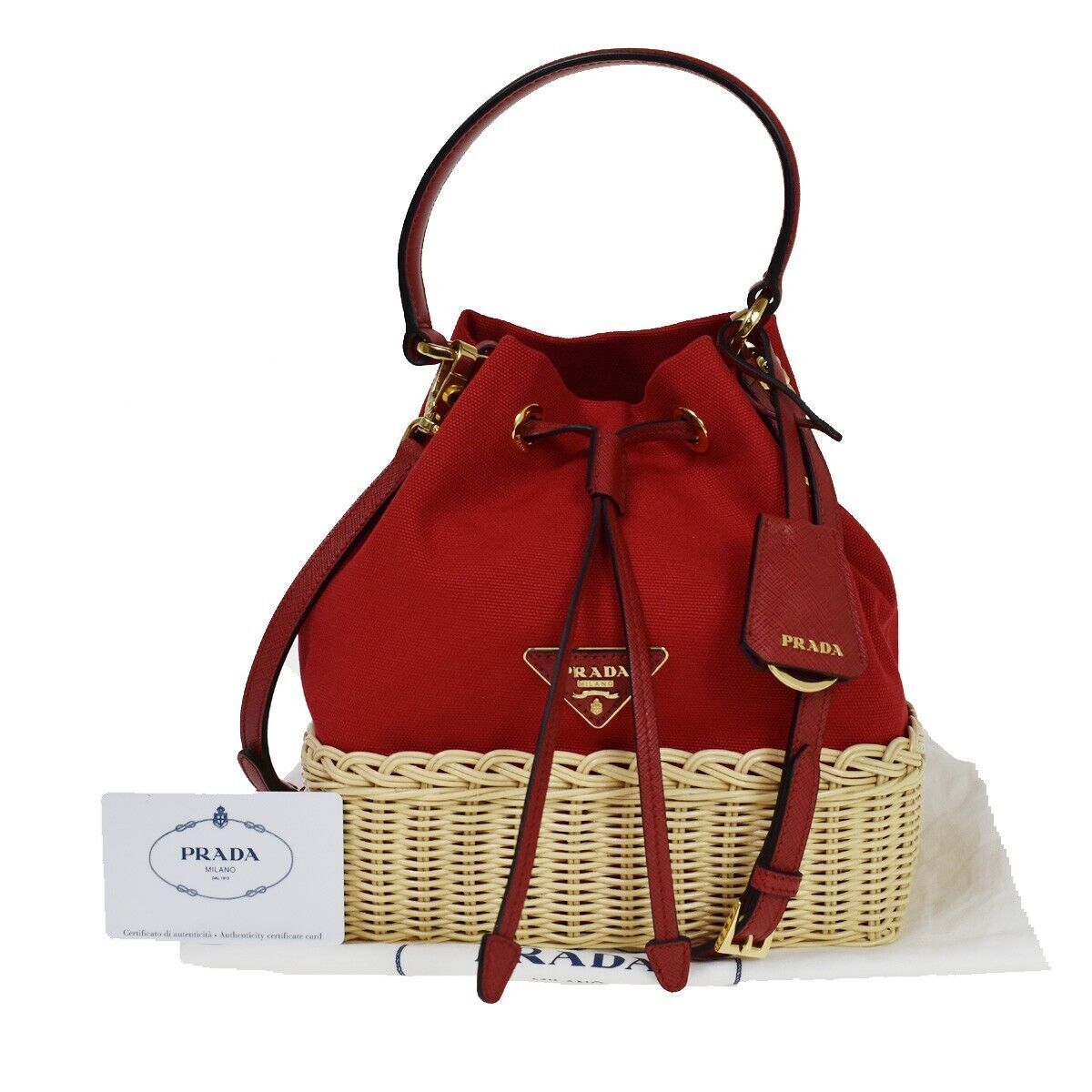 Prada Drawstring Bucket bag Canvas and Wicker