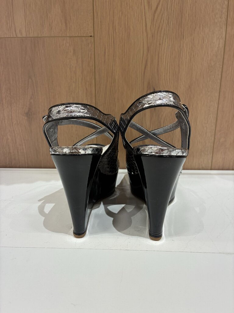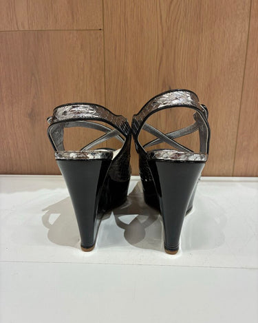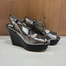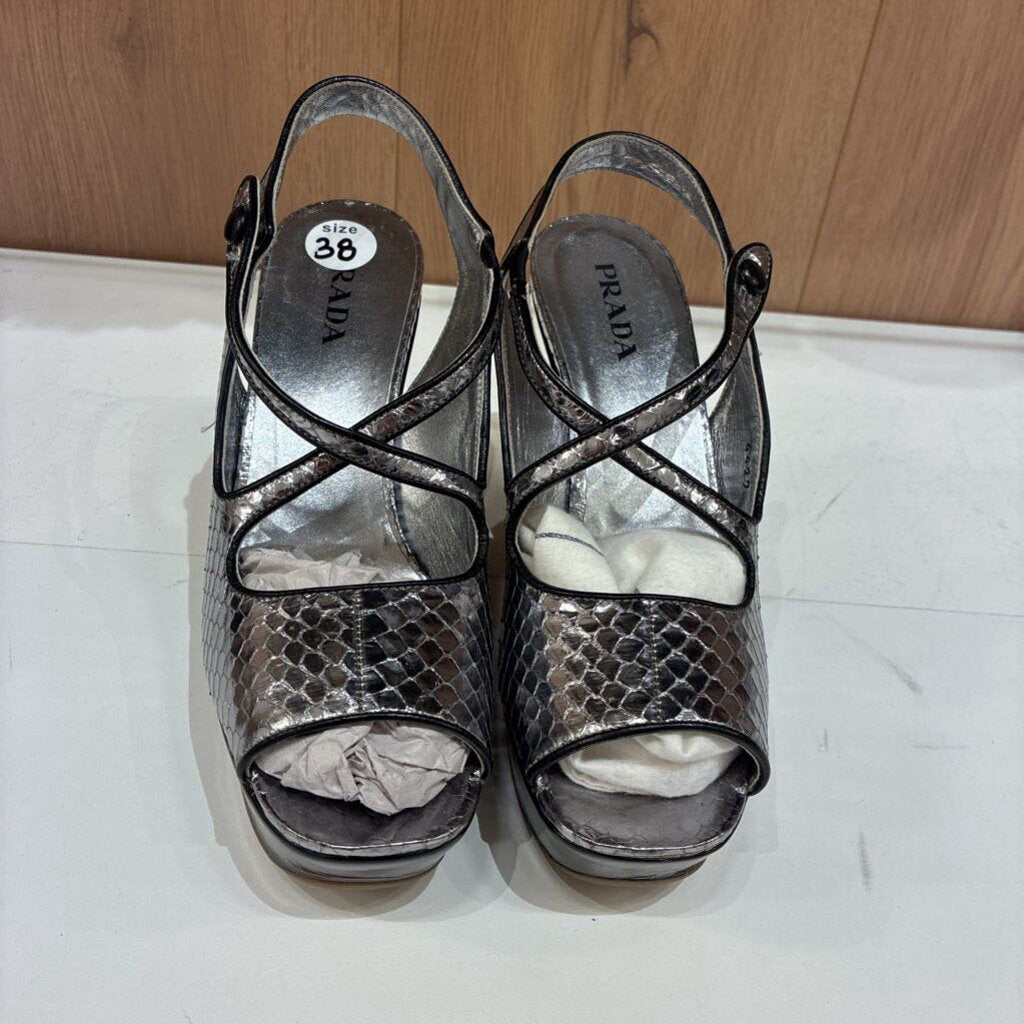 Prada Silver Snake Print Leather Wedges