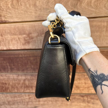 - Black Matelassé Chevron Leather With Heart Detail On Back