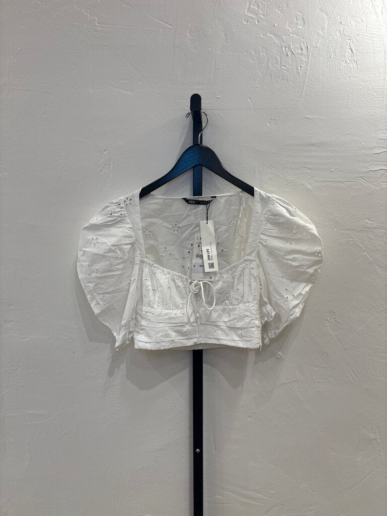 Zara White Eyelet Crop Top- small