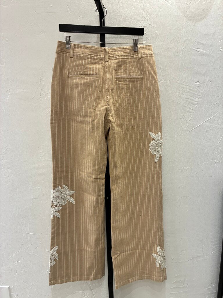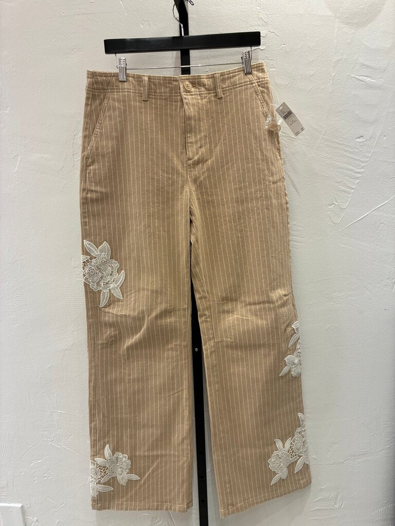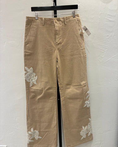 Anthropologie Striped Wide-Leg Trousers with Floral Embroidery