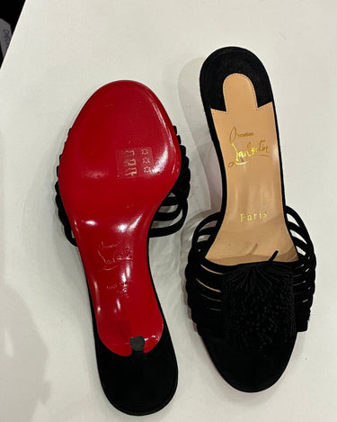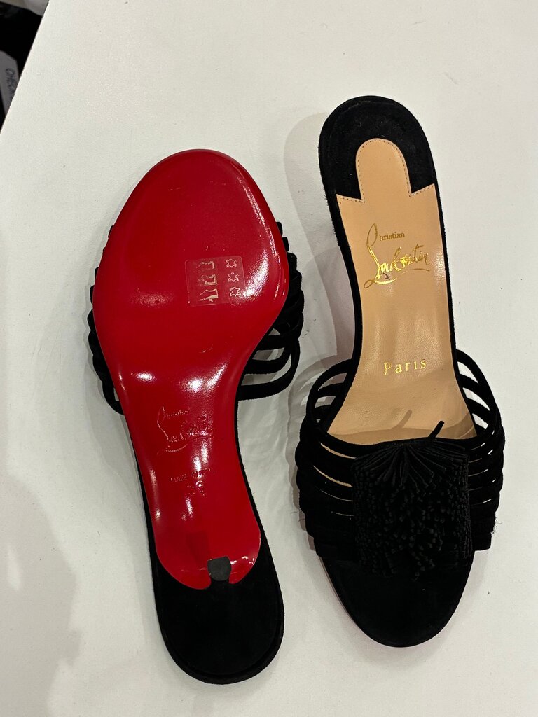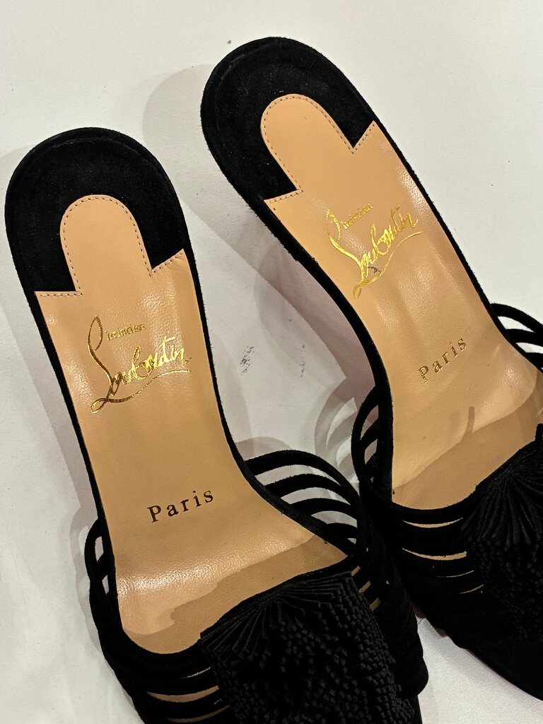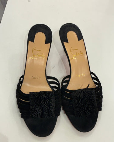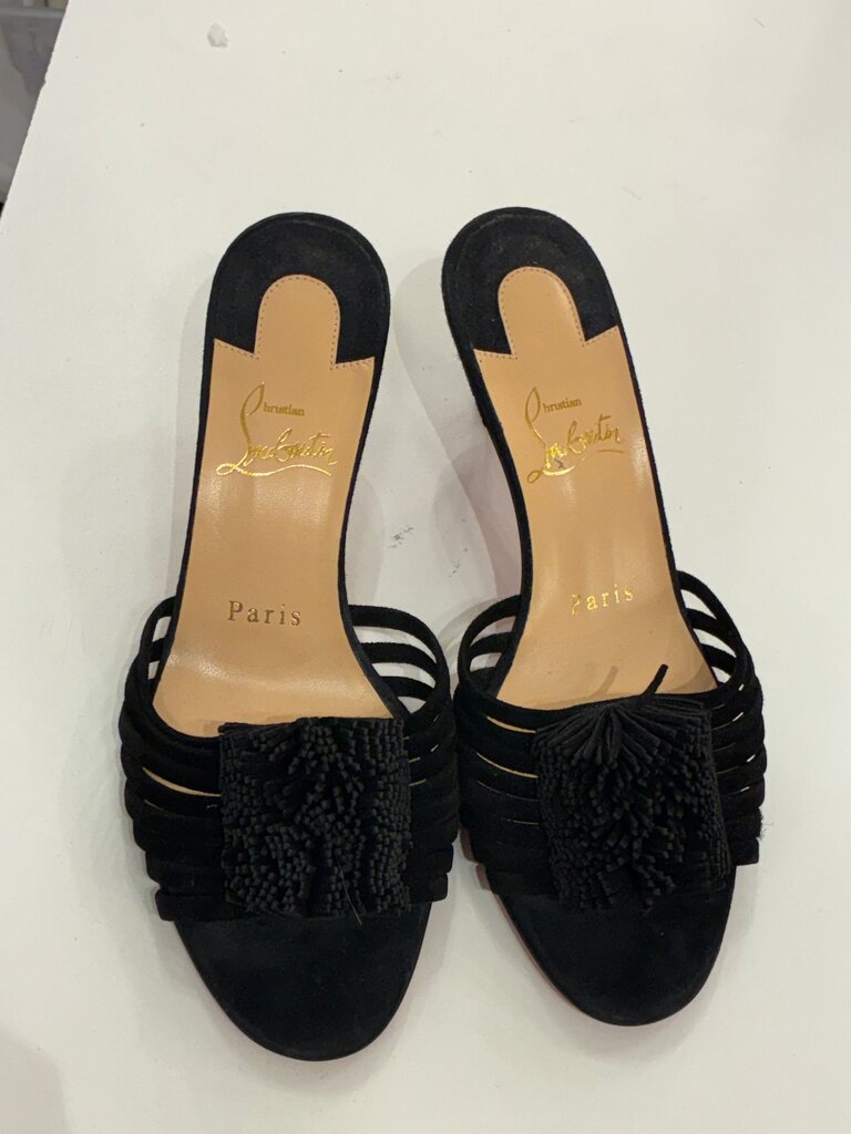 Christian Louboutin Black Suede Slide Sandals w heel sz 36
