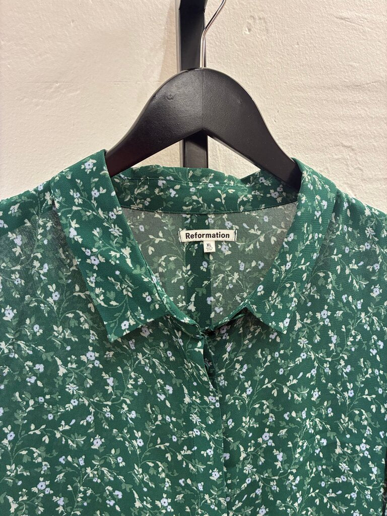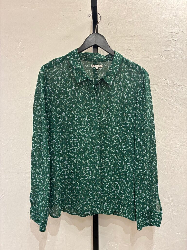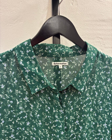 Reformation Floral Print Green Blouse