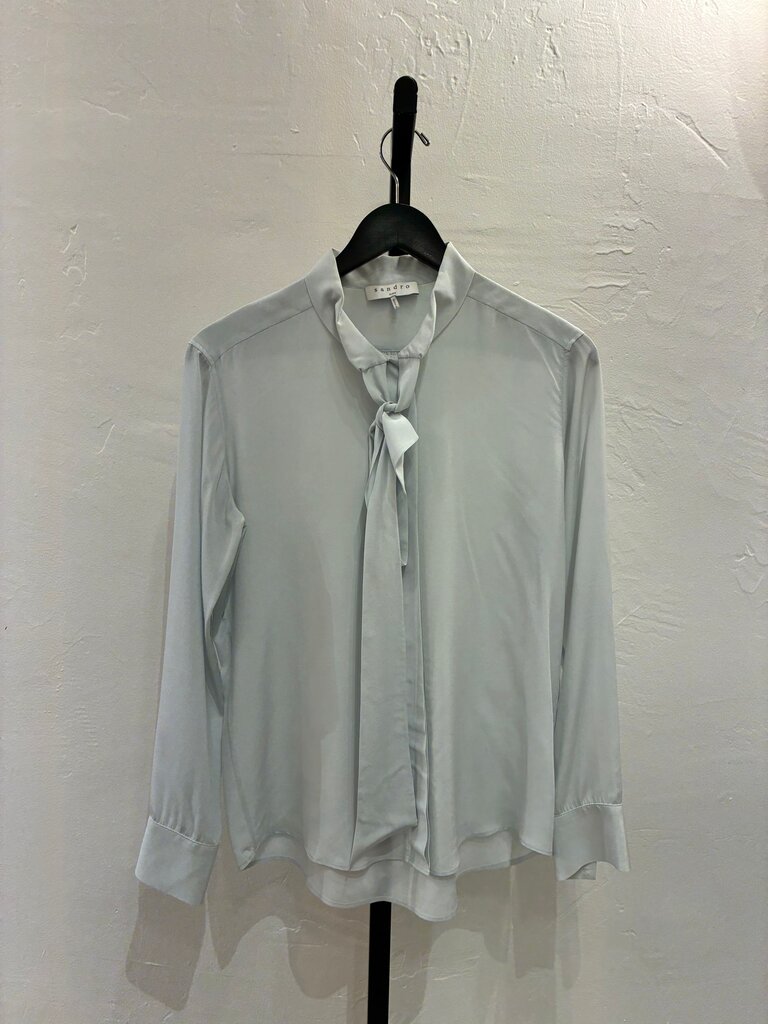 Sandro Blue Silk Top with Tie