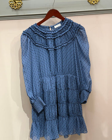 Sandro Paris Blue Ruffled Dress with Polka Dots