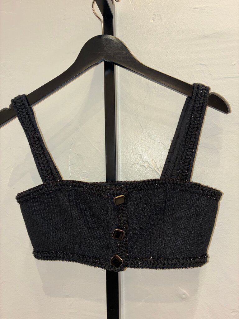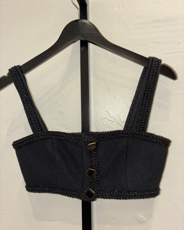 Self-Portrait Black Tweed Cropped Top